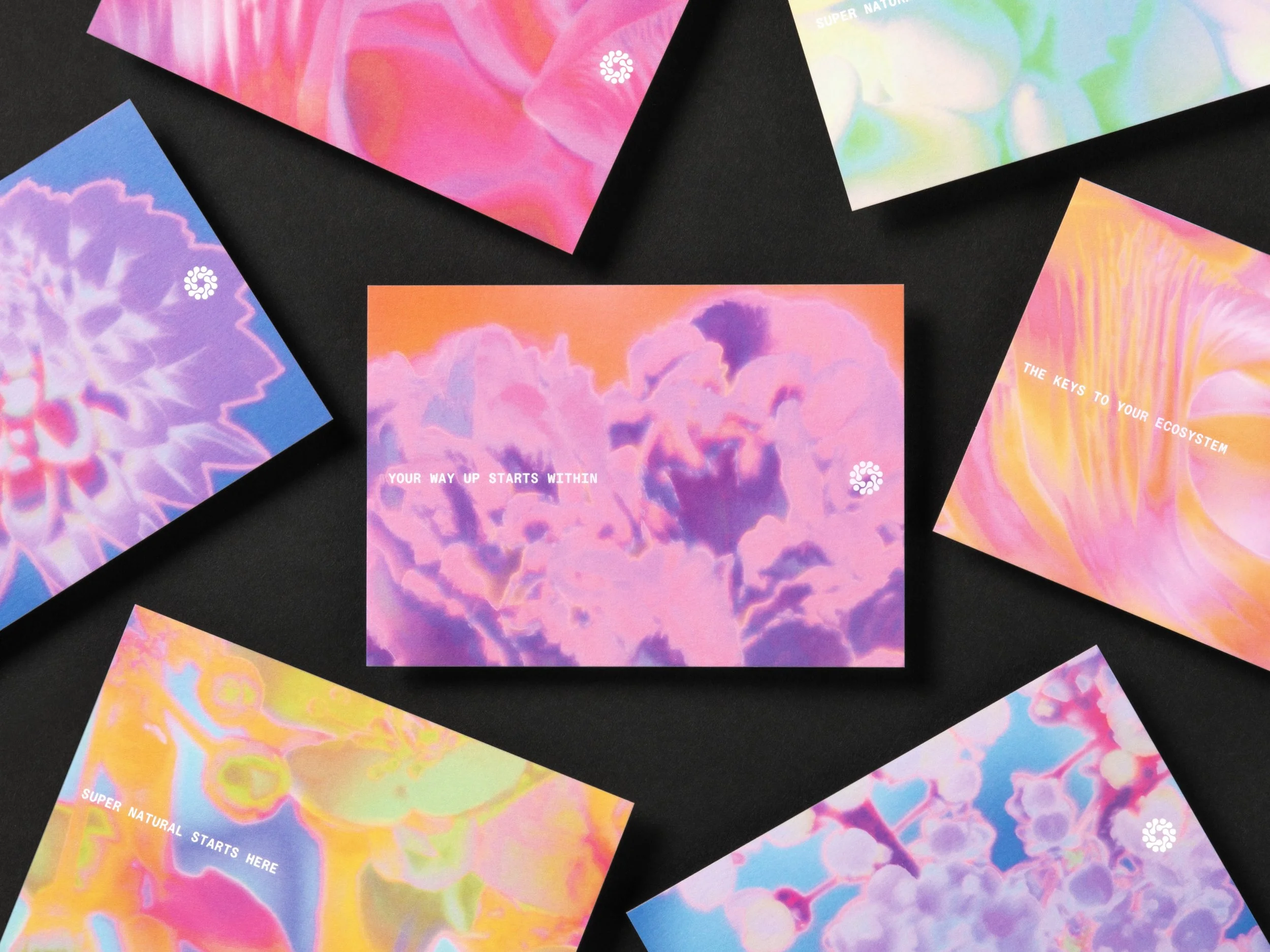 This hyper-hued colour system contrasts with the more calm, clinical palette used across packaging and functional touch-points. This tension is purposeful too, grounding the emotive expressiveness of the colour system with a sense of scientific rigour and credibility. Personalised and powerful, the Superbiome is an extraordinary identity for a range of super natural products.