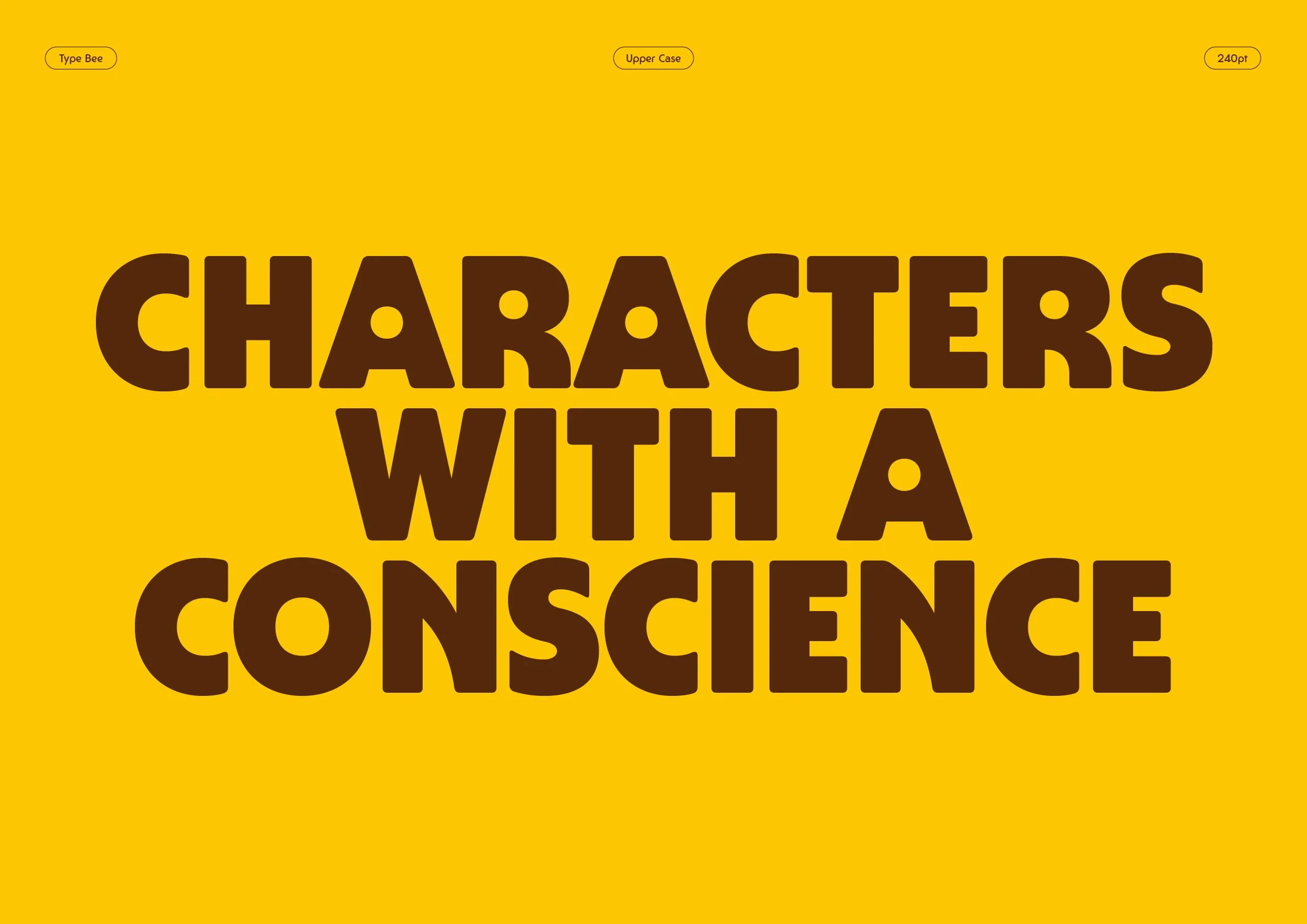 Like a kid with a crayon, Type Bee never quite goes where you expect it to. A family of nine different weights with a hive of whimsical alternates, Type Bee balances its functionality with proudly unconventional flourishes: exaggerated x-heights, circular bowls and hive-shaped curvature. It feels robust, radiant and always ready for mischief.